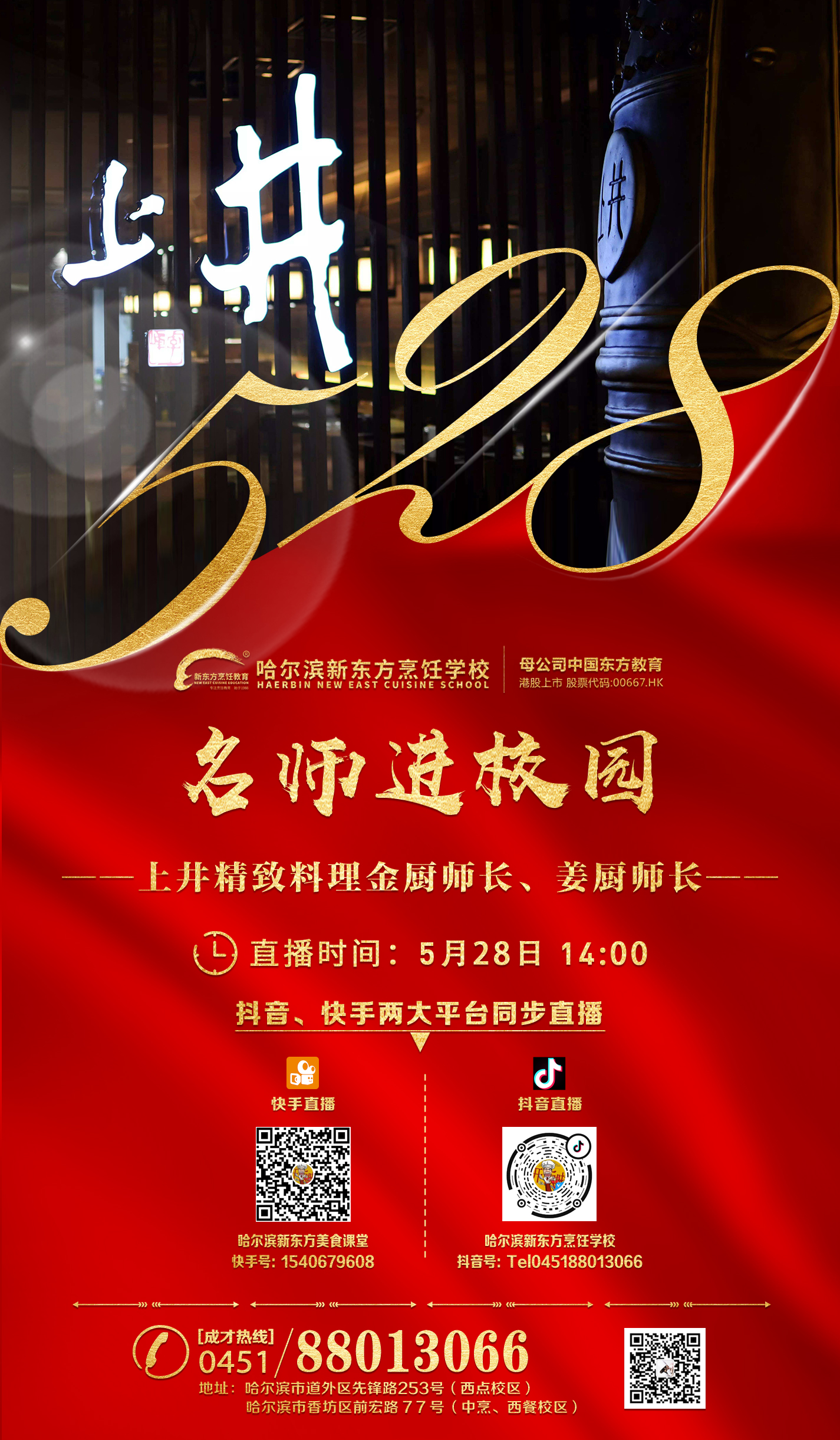 大厨来了!同学们最期待的“名师进校园”,今天迎来了高端连锁品牌上井精致料理银泰店的金厨师长和姜厨师长。上井料理企业是全国高端连锁,以日料为主打,涵盖东南亚菜系的多元化料理品牌。今天在抖音快手直播间里,这堂精彩的料理直播课,同学们意外地收获了一场文化美食之旅。