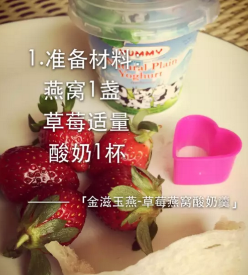 1.准备材料:燕窝1盏、草莓适量、酸奶1杯;