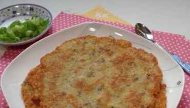 6、至定型后,翻至另一面,两面都煎成这样的金黄色即可出锅。
