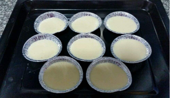 心得: 烤制时间因自家烤箱而定,配方中说明10分钟即可,但我家烤箱一共烤了20分钟塔水才变成果冻状。但颜色仍然是浅黄的,不像葡式蛋挞有明显的上色效果。