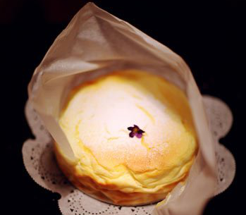 舒芙蕾奶酪的配方就是加入比蛋黄多少许的六分发的蛋白,所以烤制的过程会像舒芙蕾一样膨胀,开裂与回缩。组织有些湿润,口感显得很嫩滑,但是有一种浮起来的感觉。所以一定要在室温除去高热后包好入冰箱冷藏一晚。第二天的味道,密实了好多,每一口都能沉淀下来,回味良久,绝对可以称得上惊艳!