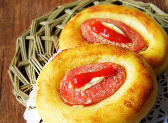 文章摘要:推荐给大家这道仿鲍鱼面包,外形神似鲍鱼,松软可口,很是香甜,可以在家中尝试做哦。 主料: 牛奶132克 高筋面粉250克 蒜蓉火腿肠2块 辅料: 沙拉酱10克 番茄酱10克 白糖35克 鸡蛋25克 盐3克 酵母3克 黄油25克 温馨提示: ①烤箱温度要根据自家的烤箱为定。