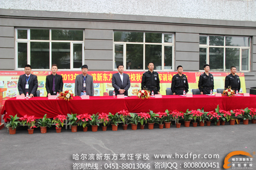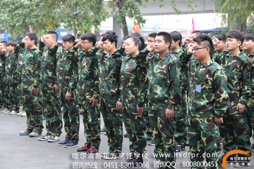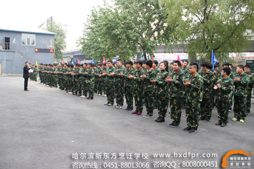 主持人宣布本次“哈尔滨新东方烹饪学校新生军训动员大会”圆满闭幕,伴随着热烈的掌声,同学们的军训正式开始。