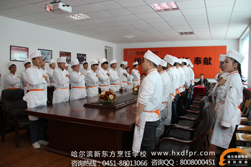 2013年11月12日上午,哈尔滨新东方烹饪学校2013级烹饪全能四班开班典礼在会议室隆重举行,开班典礼由班主任杨老师的主持,伴随着欢快的音乐、温馨的氛围与学生热烈的掌声,到场领导一行相继入席。