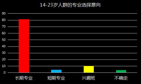二、14-23岁的人群更可能选择长期专业