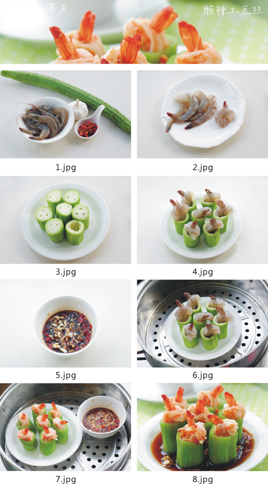 蒸的时间3-5分钟,断生后再焖一分钟即可,否则蒸久了虾肉变老,丝瓜盅也会过于软烂而无法站立。