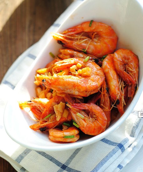 3、锅里倒油烧至七成热热,放入虾炸至变红壳酥脆后捞出。
