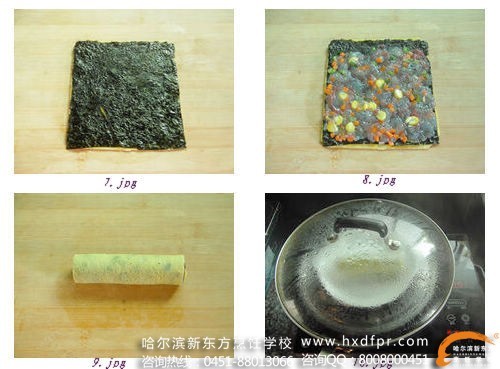 9:从身前开始,卷起来,接口处抹少许水淀粉,便于粘合。