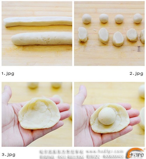 2:分割成水皮一个20g一个,油皮一个10g一个。