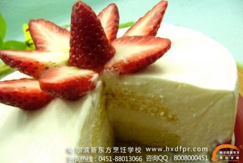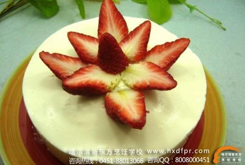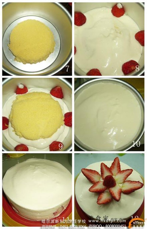 7:周围放上草莓装饰,在放上一片蛋糕片。