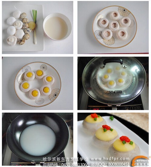 主料:鹌鹑蛋6个、白蘑菇6朵