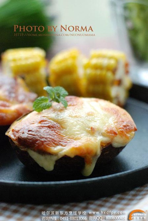 8、放上切成片装的马苏里拉芝士,烤箱180度中层大概10分钟左右芝士稍显焦黄即可;