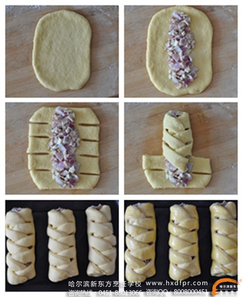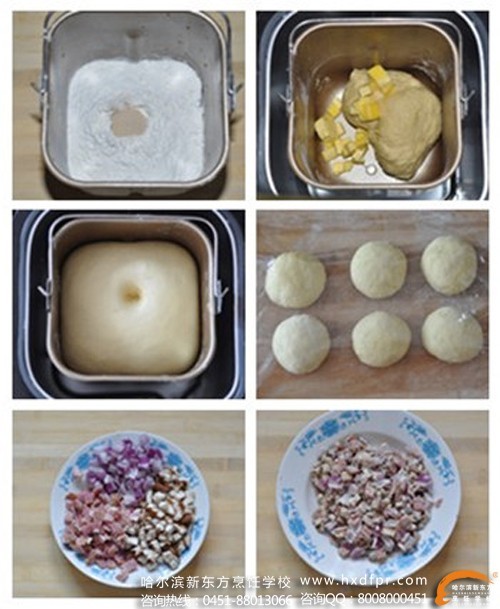 面团:高粉250克 鸡蛋40克 糖50克 酵母4克 黄油40克 盐2克 水110克