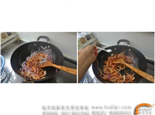 6、炒到鱿鱼打卷,锅中比较干时候加盐和鸡精即可