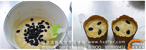 7、加入葡萄干 从下往上翻拌,切拌均匀即可