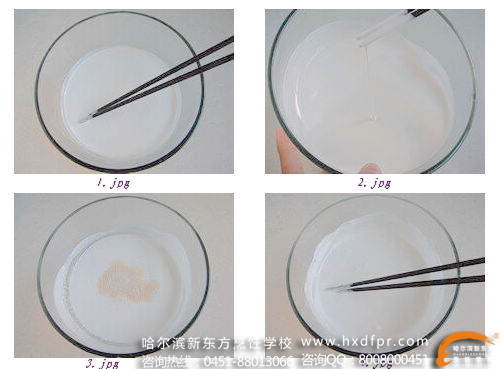 2:搅拌好的米浆用筷子提起能成线条往下落。
