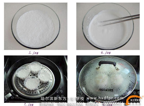 原料:粘米粉200克、开水180克、酵母3克、无铝泡打粉3克