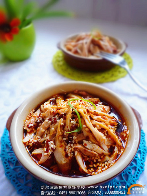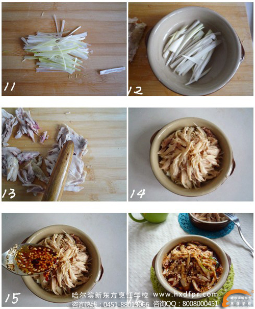 15-16、最后把料汁淋在鸡丝上就可以了。