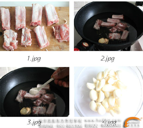 *炒排骨的时候,油可以稍微多一点,排骨炒到金黄,放入大蒜,大蒜要炒透,这样就不辣了。