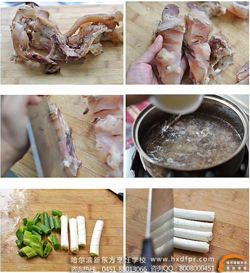 2-3、蹄筋前部切半厘米厚片,后边的圆柱形筋切段一分为二(总之就是改刀成均匀大小的段即可)