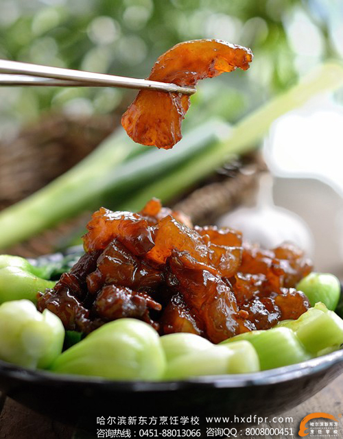 18、尝一下咸淡加入盐和鸡精调味,大火收汁,出锅的时候再淋上炸好的葱油即可