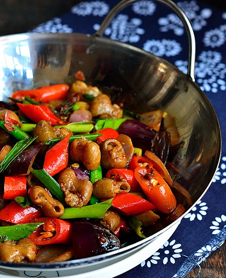 3.肥肠先前加了酱油和蚝油炒过,郫县豆瓣和老干妈都有咸味,如果另行放盐需谨慎。