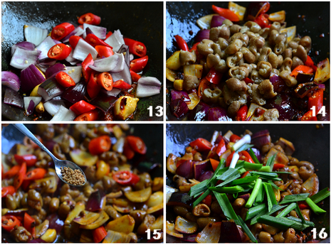 12.加郫县豆瓣炒香后,再放老干妈豆豉。
