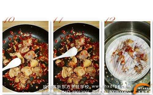 8、炒至有出香味时,盛到一容器中,封上保鲜膜入蒸锅锅20分钟即可,出锅时撒上小葱即可。