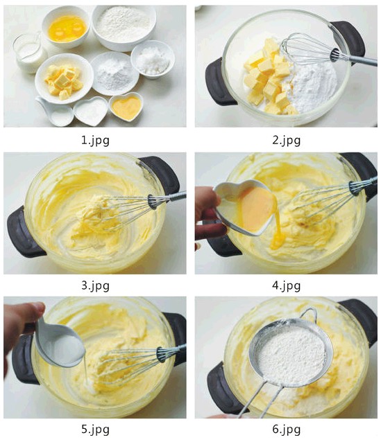 90g无盐黄油、40g糖粉、12g蛋液、170g低筋面粉、5g淡奶油