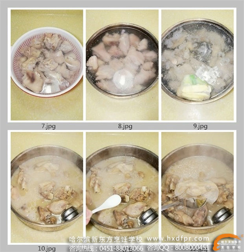 3、炖制猪蹄时水要一次性加足,中间不可以二次加水,炖制时必须用大火,这样炖制才可以保证汤色奶白;