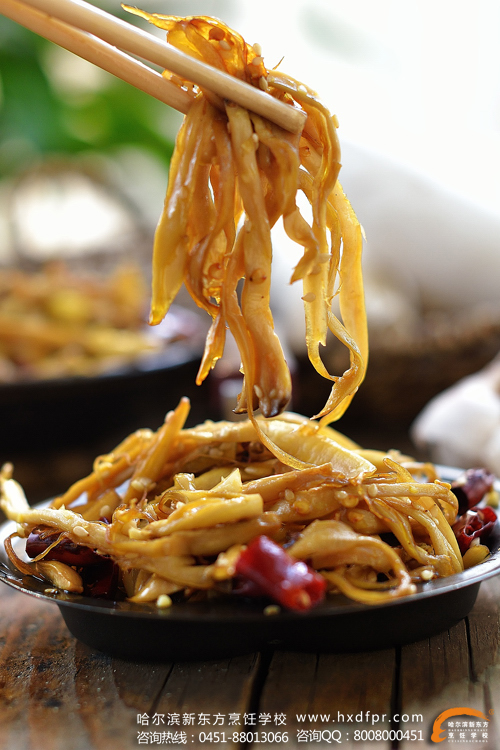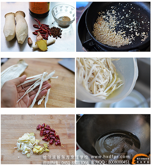 3、杏鲍菇用手撕成细丝(粗细根据个人喜好,喜欢有嚼头的就粗一点,撕出来的绝对要比刀切的好吃)