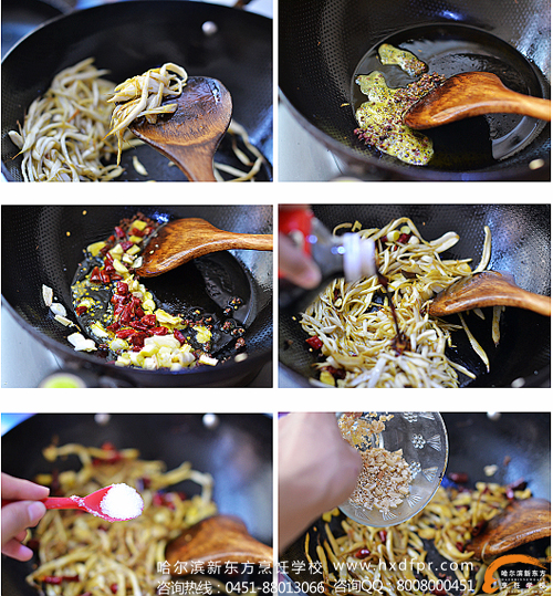 8、锅中再次到少许油,小火炒香花椒(小火煸炒出香味即可,如果为了吃的时候方便可以捞出花椒)