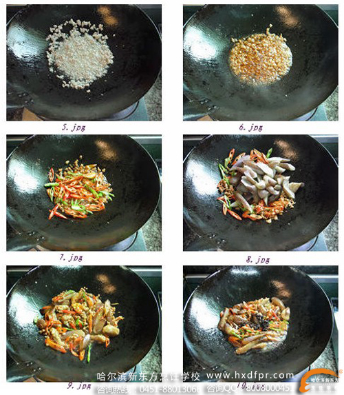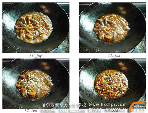 13:下入蒜茸,调入白糖,翻炒均匀,然后调入适量水淀粉勾薄芡。(勾芡时分次调入水淀粉)