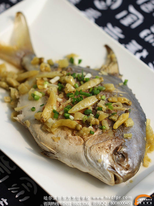 原料:金鲳鱼 泡椒 姜末 小葱末 胡椒粉 油盐