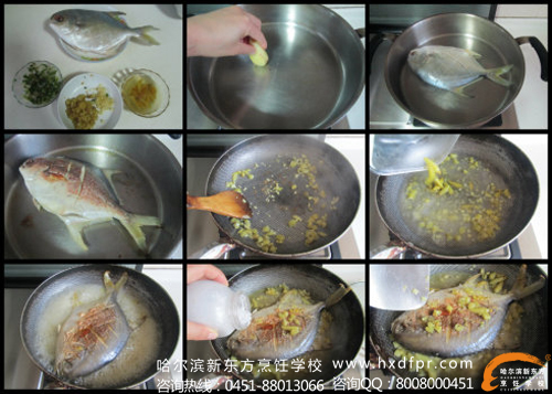 3. 锅中放入适量的油, 放入金鲳鱼;