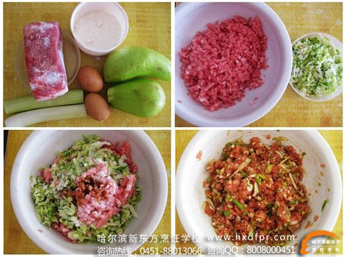 1 猪肉大葱剁碎,加一勺盐,一勺酱油,搅拌均匀