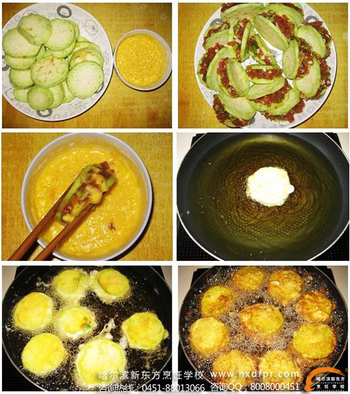 材料:茄子,猪肉,葱, 鸡蛋,面粉