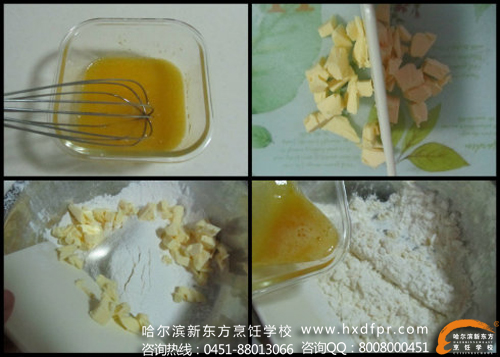 1. 卷皮的关键是把所有材料制冷做好准备,如果揉黄油和面团的时间太长,就会失去酥脆的口感;