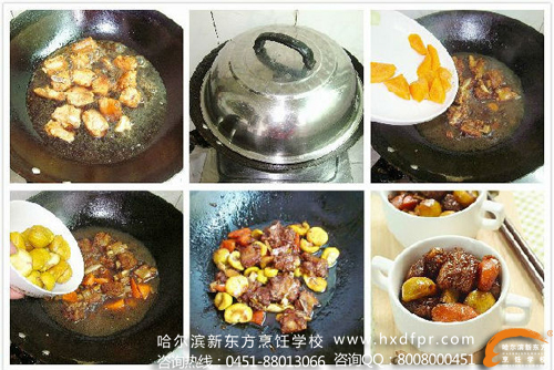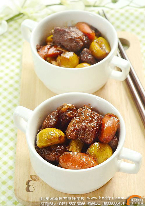 5、20分钟后,加入胡萝卜和栗子,再小火焖20分钟,至汤汁浓稠。