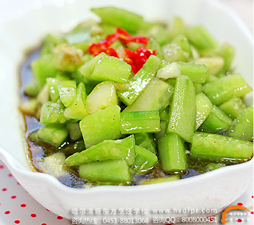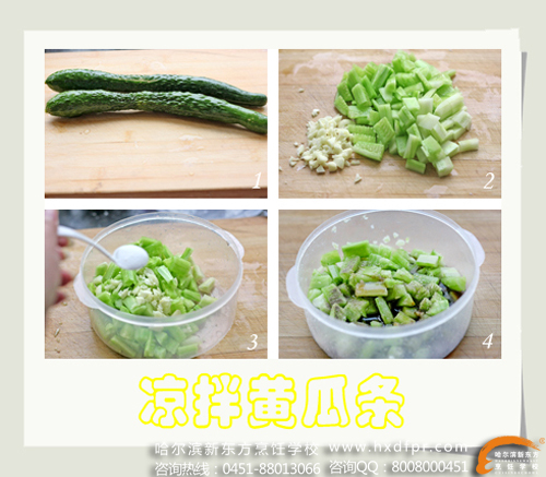 1:一定要选择新鲜的嫩黄瓜,最好是青皮的、细长的、表面的颗粒非常糙的,这样的黄瓜中间没有大籽,口感会比较脆爽;