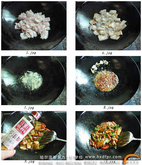 6、中小火煸炒至肉片两面焦黄,盛出。(这时候因为肥肉的油脂被煸炒出来,所以锅里的油会很多,可以另外装起来,单独或者和色拉油混合着炒青菜,炒好的青菜很香、很绿)