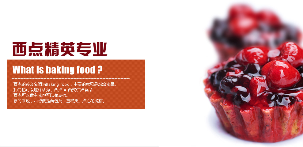 3、西点流行点心制作 4、面包制作类(甜面包、丹麦面包、法式面包、吐司面包、欧式杂粮面包、花式面包、披萨等)5、烘焙模拟实训工厂进行实际制作演练学习