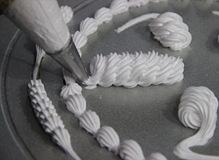 1、基本功强化训练:面包整形(滚圆、搓条、橄榄形、花辫等)、基础花边类(基本绕边、抖边、挤边、拉边、吊边等)、基础蛋糕抹面(直坯、圆坯、弧形坯、方坯、心形坯等)